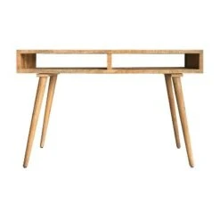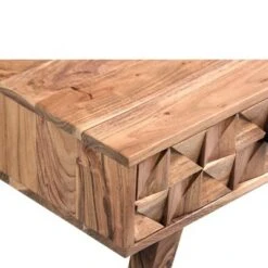Flaunt your exotic decor items and at the same time revive your living space or entrway with this traditional style Console Table. Features 2 smooth gliding drawers with intricate floral motif drawer front that adds striking appeal to its overall design while the antique knob pulls offer easy accessibility. Handcrafted from mango wood in the hues of brown and white finish, it is supported on cabriole legs and showcases rough hewn saw texture details.