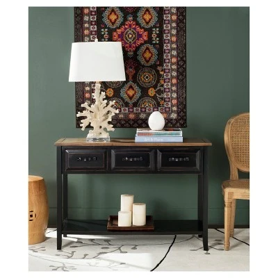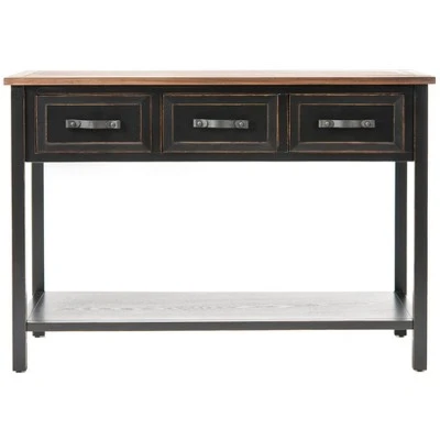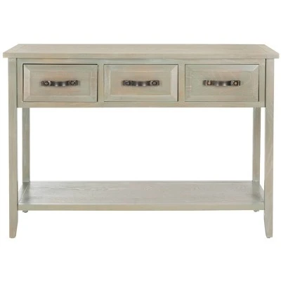Pretty up a hallway or living room wall with the country fresh Aiden console table with distressed pale blue finish with a hint of white. Crafted of sturdy elm wood, Aiden is designed with charming framed fronts on its three ample drawers plus a bottom shelf to solve your storage woes. With straight lines and casual finish, this piece adapts to any casual decorating style. The Aiden console table is the perfect addition for Contemporary, Country, Industrial, Nautical, Shabby, or Transitional styled rooms.