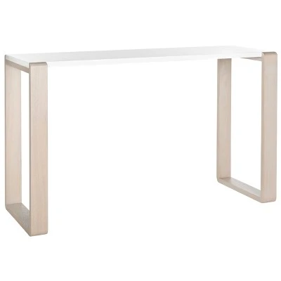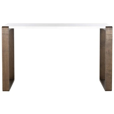 Rugged meets refined in the contemporary Bartholomew console table with lacquer top and chunky wood grained base in a chic finish. Whether set in a penthouse or loft, this dramatic console will command attention in a living room or hall. Constructed from MDF wood, the Bartholomew console table is able to support up to thirty pounds. The simple design makes it a piece that is easy to style and match. The Bartholomew table is the perfect addition for Contemporary, Mid-Century or Modern style rooms.