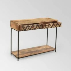 Proudly display your favorite photos and decorative items on an accessory of incredible style that brings your home a unique touch. Our handcrafted modern industrial console table brings a perfect amount of stylish comfort and edgy aesthetics to your home. Featuring a sturdy acacia wood top supported by stunning toothpick legs, our accessory is an excellent centerpiece for any living room or hallway. This is finished with a charming faux live edge design, giving every interior space a refreshing, natural touch.