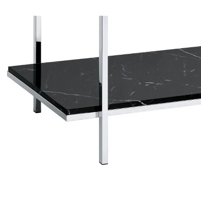 Magnify the beauty of your home with the inclusion of this well designed console table. It features a metal frame in silver finish enchasing a rectangular mirror tabletop and a rectangular open bottom shelf made from faux marble in black finish. It is supported on square metal legs for stability and strength.