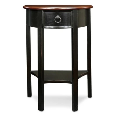 This soft silhouette is perfect for that tight area in a hallway or stair landing. Go ahead and brush by there are no corners to bump. A single drawer with nickel metal pull hardware for the things you don’t want to see and a lower display shelf for the things you do.