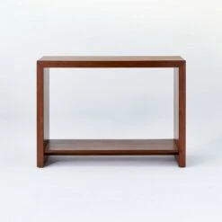 Turn any spare space in your home into a sleek decorative display with this Ellwood Mid-Century Modern Wood Console Table from Project 62™. Built from solid wood for durability, this console table brings mid-century charm and modern style to your space. The wooden console table comes with a smooth tabletop to showcase framed photos, potted plants and more, while two drawers and two open lower shelves are great for displaying your go-to reads or tucking away everyday items. Striking a clean-lined silhouette, this rectangular console table complements nearly any design aesthetic or color palette.