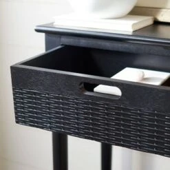 Curate an unused corner with the charming Gomez triangular table with clean lines that complement country casual, traditional and transitional interiors depending on finish. Crafted of Pine wood and aluminum alloy with chic water based paint finish the Gomez corner table features a single pull out storage drawer, bottom shelf and gracefully turned legs. The simple yet elegant design makes this modern end table an easy to style and match piece. Its sturdy build can support up to thirty five lbs.