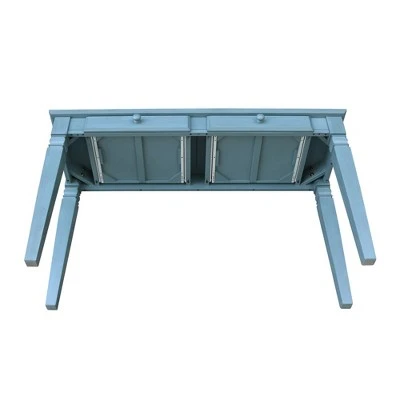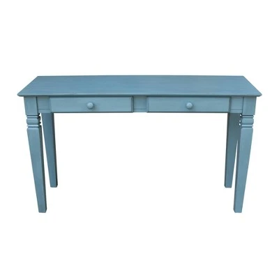 International Concepts home furniture is for those who appreciate high quality, wood furniture with a traditional and elegant look. This piece will beautifully complement any decor in your home. The Java Console table is made of solid hardwood with a butcher block surface. It measures 52″W x 18″D x 30″H. The table features two drawers. The inside of each drawer measures 14.6″W x 13″D x 1.9″H. The distance from the bottom of the apron to the floor is 25.3″. The console table ships ready to assemble.
