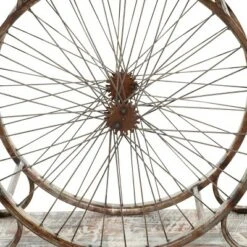 - This coffee table is shaped and attached wood materials fitted on a welded iron tripod frame