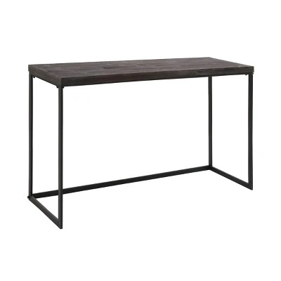 - This chic console table is a streamlined medley of solid metal and pinewood