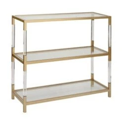 - This mirror table accentuates a half of a circle top and bottom shelf