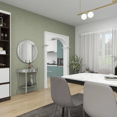 Get organizing with this half circle console table and add a dash of sparkle to any of your home spaces. Useful and elegant, console tables are more than just a place to throw your mail. Bring a finishing touch to your home with an inviting appeal with this console table and mirror set. Designed with rubber stoppers to prevent scuffing and sliding. This item comes shipped in one carton. Wooden table is detailed with mirror overlay and furnished with a flat bottom shelf. Suitable for indoor use only. Glam inspired. Maximum weight limit is 100 lbs.