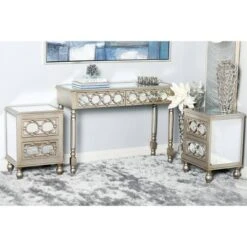 - For that bold statement, each console table is designed with reflective tabletop and accent mirrors