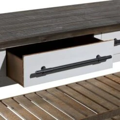 - This round wooden side table for any living spaces carries a brown wood exterior with antique-like distressing