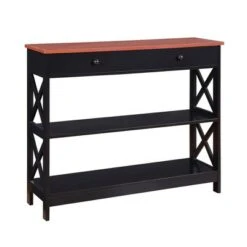 Give your home a handsome makeover with the Oxford 1 Drawer Console Table with Shelves. Featuring a bottom and middle shelf as well as a drawer for concealed storage you can display collectibles and hide away unsightly accessories. The X pattern creates a modern appeal with clean lines. Crafted to last the Oxford 1 Drawer Console Table with Shelves will quickly become a staple in your home. Also available in multiple finishes it will easily complement any decor. Look for other items from the Oxford Collection for the complete look sold separately.