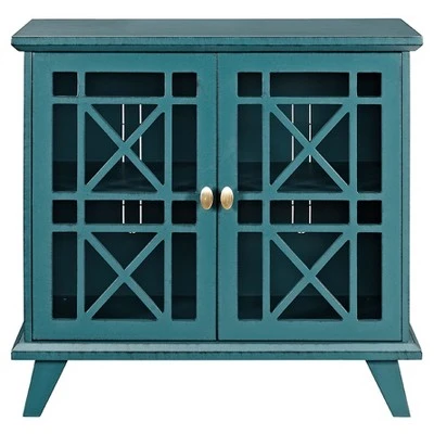 Bring the art gallery home with this 32″ fretwork accent console from Saracina Home. The unique cutout pattern of the front doors of this storage shelf adds a dynamic and eclectic voice to whatever room you decide to feature it in. It can be used in kitchens or dining rooms as a buffet or in living areas and bedrooms as a bookshelf or display case. Burnished edges and angled legs only increase the artistic story this cabinet has to tell, so go ahead and be bold and in invite this piece into your home.