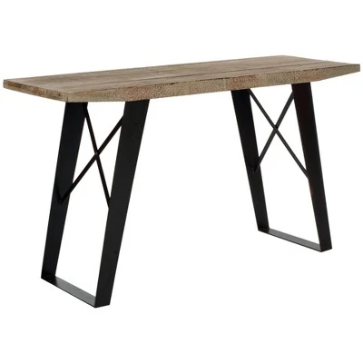 It could be mistaken for Japanese sculpture. The Waldo Console is a visual meeting of the minds with its hefty metal foundation and solid wood with a natural finish for an industrial reclaimed look. It’s perfect for the Modernist in the contemporary world. Crafted from Fir wood and iron with a brushed finish, the console can support up to 150 lbs. The Waldo console table is a perfect addition for Contemporary, Industrial, Modern, Rustic or Transitional style interiors.