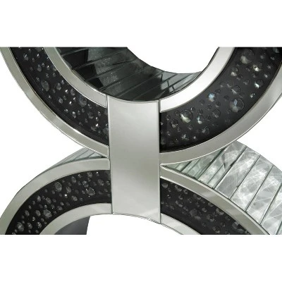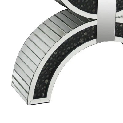 A geometric style base and clear acrylic panels filled with black faux crystals ensures that this Console will be the crowning jewel of your home. The table is constructed from durable Composite Wood materials and it is fully lined with beveled mirrors that reflect light and your modern design aesthetic. Add this Console table behind your sofa to bounce light around your room or place it in your entryway right by the front door so you can handily drop your keys at the end of a long day. Note: Other featured items in image except this Console table are sold separately.