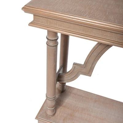 This weathered wood trestle console table from the Signature Collection by StyleCraft Home Collection provides functional décor for your entryway. Showcase frames, vases, or any decorative items of your choosing on the solid wood tabletop. The natural color matches most décor making it a versatile choice. Narrow design is well-suited to a hallway. The simplicity of this console will blend to your home.